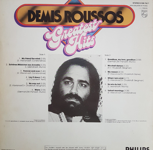 Sumérgete en el legado atemporal de Demis Roussos con esta esencial colección de sus Greatest Hits. Este álbum, una joya del género Folk, World, & Country, encapsula la esencia de un artista cuya voz trascendió fronteras y generaciones. Roussos, con su inconfundible tenor operático, fusionó melodías griegas tradicionales con exuberantes arreglos orquestales y sensibilidades pop, creando un sonido único que resonó en todo el mundo.