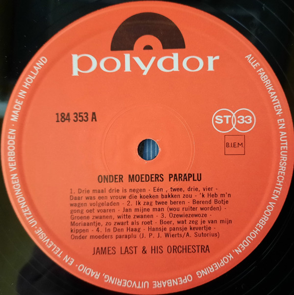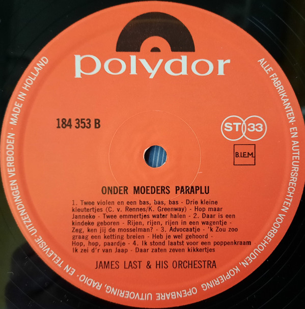 Este disco es una brillante muestra de su aclamado “happy sound”, fusionando magistralmente el Pop con elementos vibrantes de Brass & Military. Las características trompetas, trombones y percusiones militares se entrelazan con melodías pop pegadizas, creando arreglos opulentos y llenos de energía que eran su sello distintivo. “Onder Moeders Paraplu” ofrece una experiencia auditiva optimista, diseñada para levantar el ánimo y evocar una alegría contagiosa, demostrando la habilidad única de Last para transformar cualquier pieza en un himno festivo.