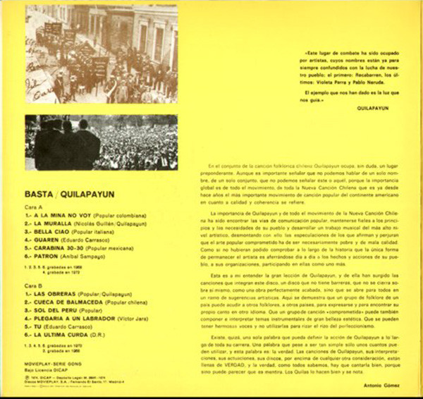 “Basta”, lanzado en 1974 por el icónico grupo chileno Quilapayún, trasciende la etiqueta de álbum musical para erigirse como un vibrante testimonio de resistencia y memoria histórica. Publicado apenas un año después del devastador golpe de estado en Chile, este trabajo se convirtió en un pilar fundamental de la Nueva Canción Chilena, amplificando la voz de un pueblo en el exilio y la lucha por la justicia.