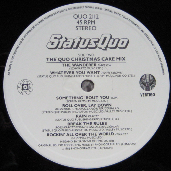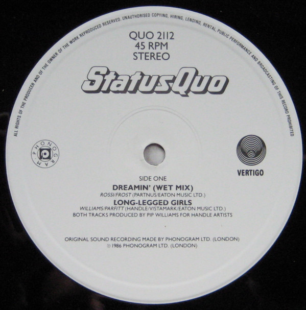 B (f): Status Quo Publishing/Eaton Music Ltd./Valley Music Ltd.