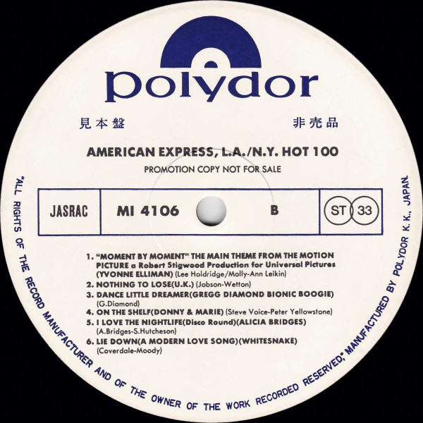 Un aspecto particularmente curioso de este lanzamiento es la audaz inclusión de “American Express” en su título. Esto sugiere una de las primeras y más ingeniosas colaboraciones entre una marca icónica de servicios financieros y la industria musical, posiblemente como un esfuerzo promocional exclusivo o una compilación curada para evocar el estilo de vida sofisticado y global que la marca representaba. Es un artefacto intrigante que fusiona la cultura pop con estrategias de marketing innovadoras de su tiempo.