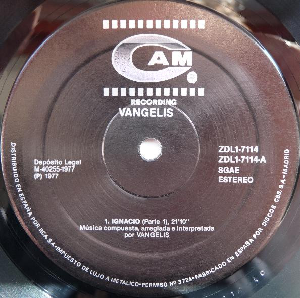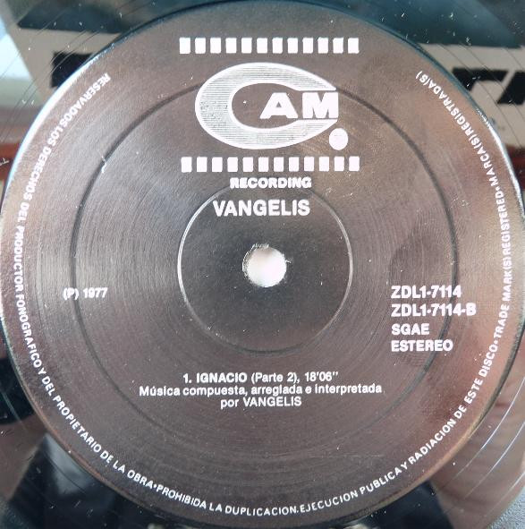 Vangelis – Ignacio Año:1977 País: Spain Género: Electronic Formato: LP, Album Sello: CAM Condición Disco: Usado – VG++